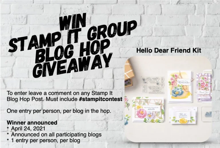 Spring is here, the days are getting warmer and flowers are blooming – it must be Easter time! Hi, I’m Beth Brach. Thank you for stopping by today to check out my Easter card featuring a sweet bunny and his little chick friend watching over some beautiful Easter eggs. To continue on your journey through our projects, simply use the BLOG HOPPERS links below.  Leave a comment on each blog, including this one, with the hashtag #stampitcontest to be entered to win the Hello Dear Friend Kit.