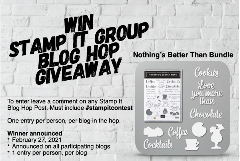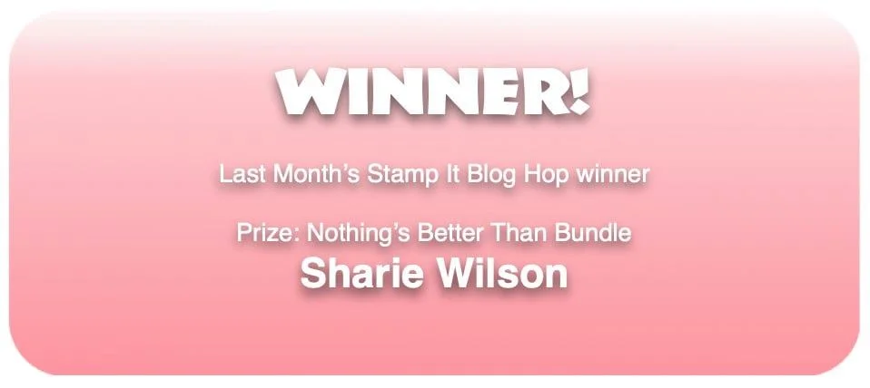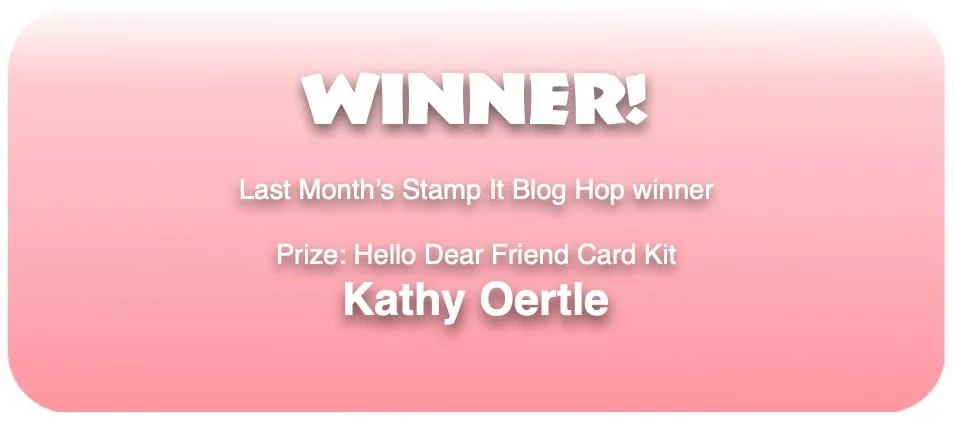 Remember to leave a comment with #stampitcontest to enter the drawing. Check out last month’s winner! Kathy Oertle -you left a comment last month and look what you won!!