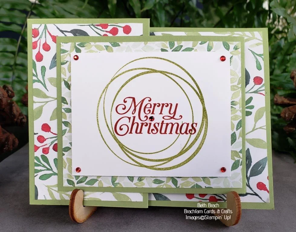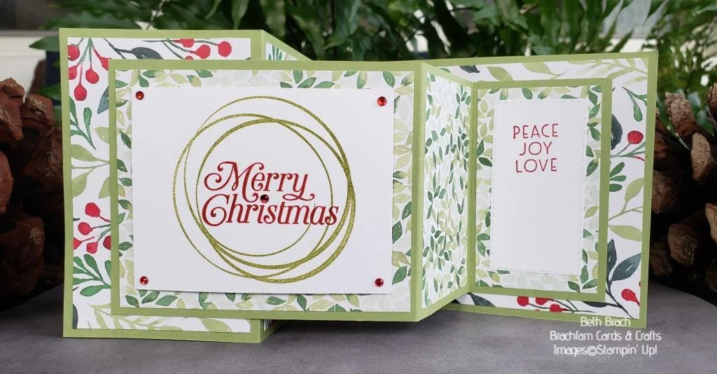 Welcome to the Stamp It Group Christmas Holiday Blog Hop! My name is Beth Brach and I can’t wait to show you my project. Some of you know I love fun folds so today I have a Double Z Christmas Card featuring the Painted Christmas Designer Series Paper from Stampin’ Up! To continue on your journey through our projects, simply use the BLOG HOPPERS links below. Leave a comment on each blog, including this one, with the hashtag #stampitcontest to be entered to win the Looking Up Card Kit.
